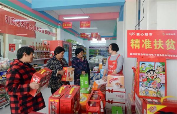 颍州区“光彩·爱心超市”在过去爱心超市“政府主导、社会捐助、贫困户参与”模式的基础上,引入经营理念和网络思维,拓宽发展路径,将“爱心小超市”打造成为政策宣传、金融服务、电信服务、邮件包裹、保险惠农、代买代卖、农资下行、农产品上行的“扶贫大舞台”,既促进企业扩大市场蓬勃发展,又惠及乡邻、助力扶贫,为脱贫攻坚铺就一条光彩之路。